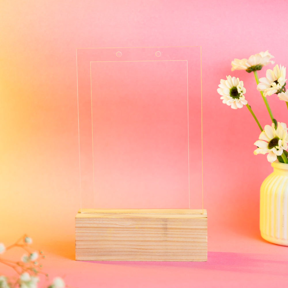 TYL ™ Acrylic Rectangle Earring Frame with Natural Wooden base